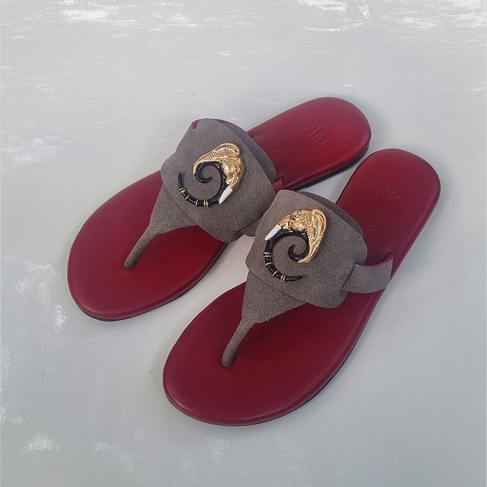 - Rounded toe, 3 way interwined leather upper, red sheepskin lining, inserted elastic band for a better grip. Padded heel with a 1/5 inch heel.